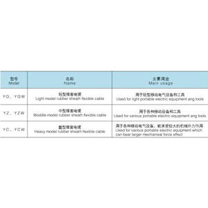 1、YZ型电压UO/U为300/500V,YC型为450/750V。